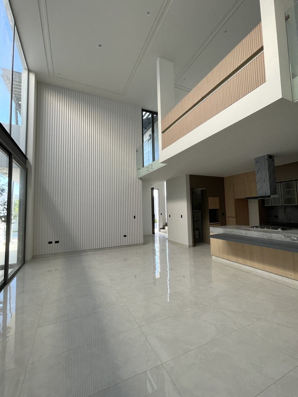 PLANTA BAJA: -COCHERA PARA DOS AUTOS -MEDIO BAÑO -COMEDOR - SALA A DOBLE ALTURA. -COCINA CON BARRA DE GRANITO EXÓTICO Y PANELES DE CRISTAL CON ILUMINACIÓN LED. -BAÑO COMPLETO - ESPACIO FLEX (ESTUDIO/ RECÁMARA) - RECÁMARA SECUNDARIA CON BAÑO COMPLETO. - ÁREA DE SERVICIO.